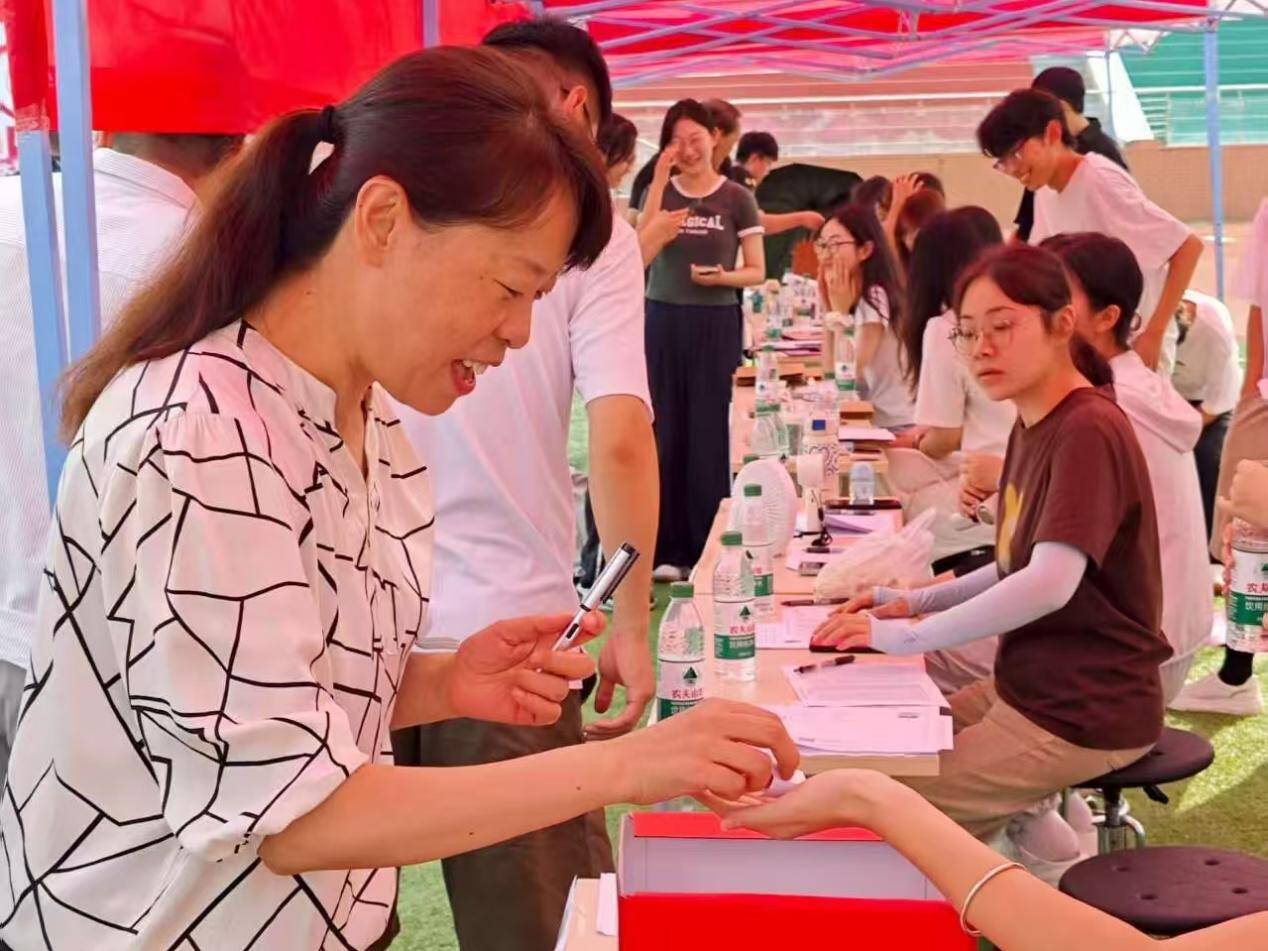 为迎接2025级新生的到来,公司特别设置了“扬帆起航”打卡墙,新生和家长纷纷在打卡墙合影留念,记录下初入公卫大家庭的珍贵瞬间;“心愿启航”手写卡区域,同学们认真对老员工活的期待与祝愿,一张张卡片承载着青春的憧憬;公司还为家长准备了抽奖活动,每位参与者都能获得一份公司精心准备的文创产品。这些精心设计的活动,让新生在轻松愉快的氛围中快速融入集体,感受到公卫公司大家庭的温暖与活力。