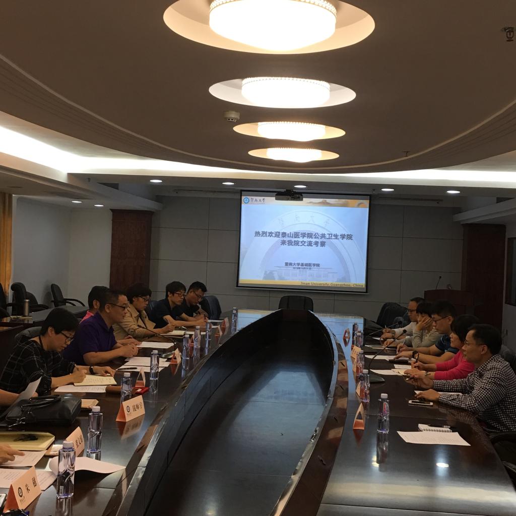 在暨南大学,考察团与基础医公司党委副书记孟宪军、公共卫生与预防医学系主任荆春霞教授及各教研室主任、教师就公共卫生与预防医学教学工作和研究生教育问题进行座谈交流,之后在荆春霞主任带领下,参观了公共卫生与预防医学实验室、各教研室、校史馆和图书馆。
