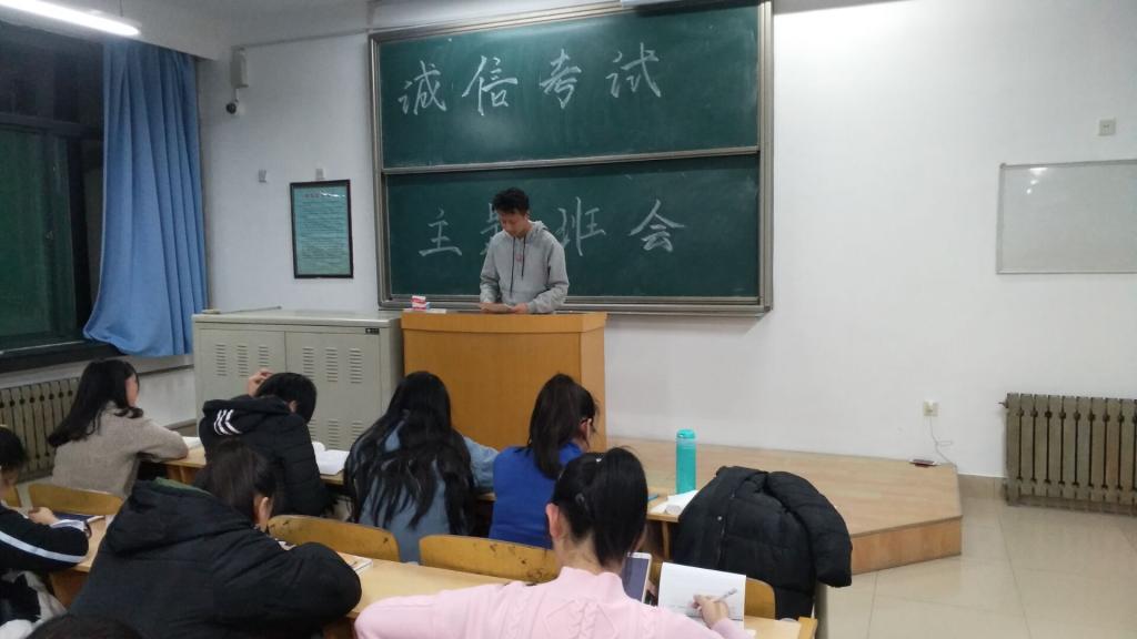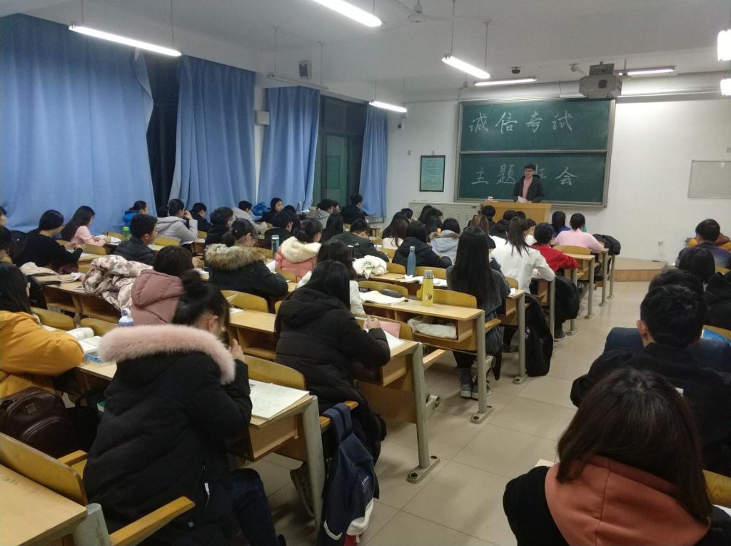为了严肃考风考纪,杜绝考试作弊行为,营造良好的学习氛围,2019年1月3日,公共卫生公司在教学南楼召开诚信考试主题班会。