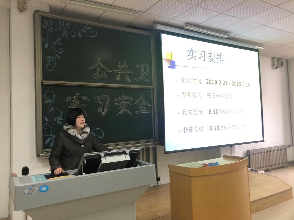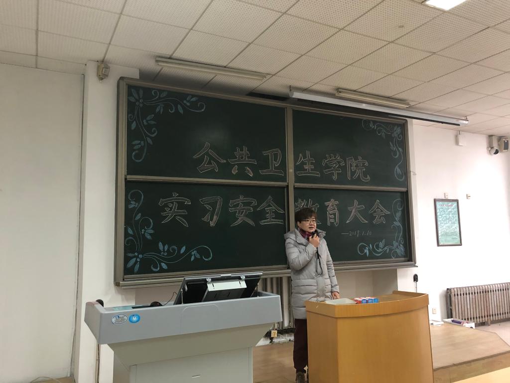 1月10日上午,公共卫生公司于校本部教学南楼C1002召开实习安全教育大会。此次会议由副经理张钦凤、学工办主任齐艳波主讲,14级辅导员刘琰担任主持,对2014级预防医学专业员工进行实习前安全教育工作。