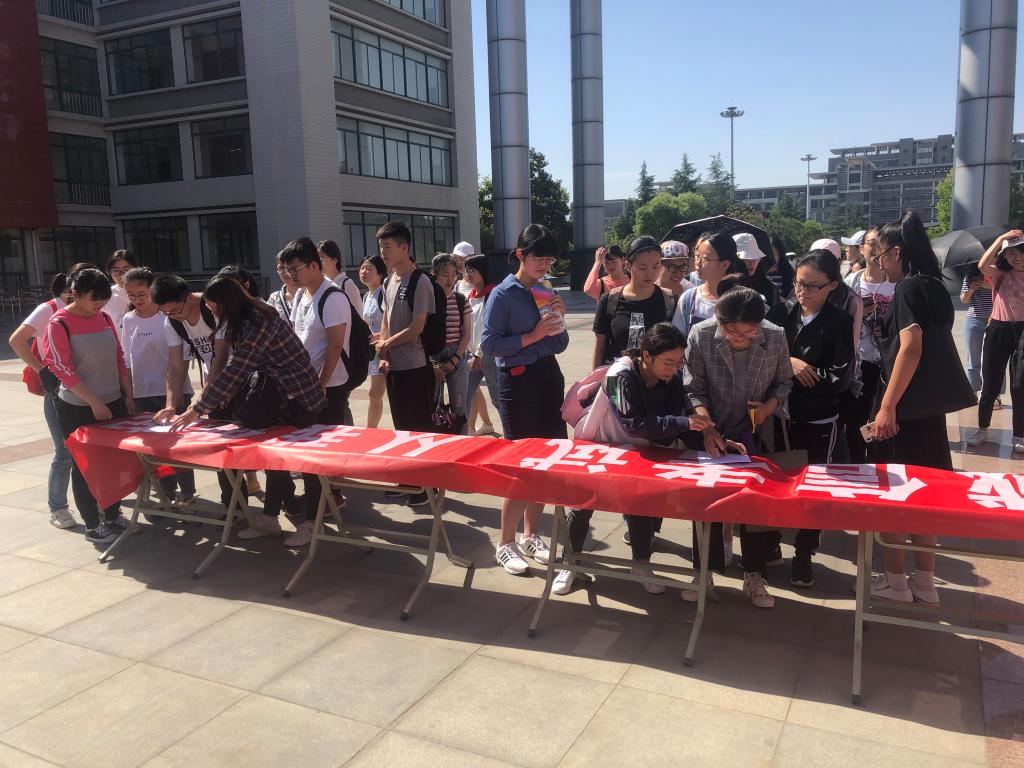 随着期末考试的临近,为了营造良好的考试氛围、净化考场环境、杜绝有失诚信的舞弊行为,5月20日上午,公共卫生公司在教学楼AB座中间举办了“诚信考试,从我做起”主题签名活动,全体员工参与了此次活动。