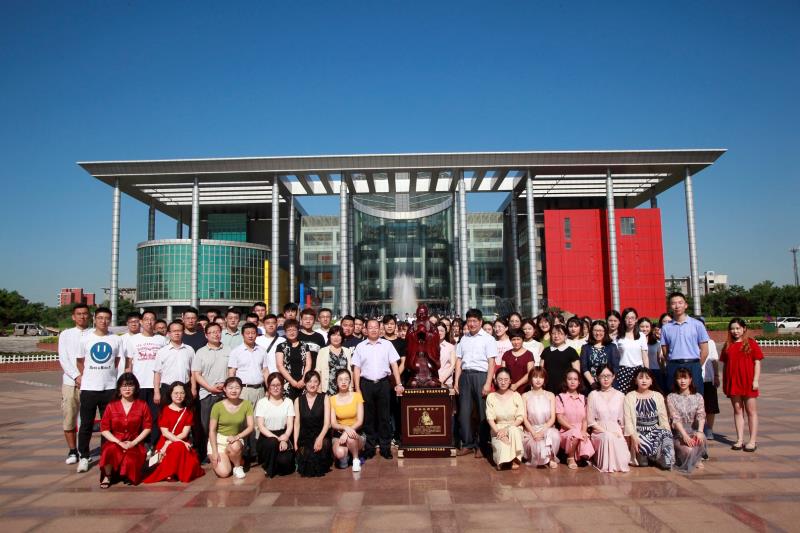 最后李经理和高乐强共同为孔子塑像剪彩。全体师生在塑像前合影。