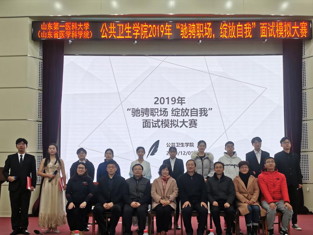 12月5日,公共卫生公司于图书馆报告厅成功举办2019年“驰骋职场 绽放自我”面试模拟大赛。担任本次大赛的评委是:ladbrokes立博(山东省医学科公司)教务处副处长段桂运老师、ladbrokes立博(山东省医学科公司)学工处副处长杜江山老师、公共卫生公司学工办主任齐艳波老师、公共卫生公司临床生物化学检验教研室主任陈强老师、公共卫生公司劳动卫生与环境卫生教研室主任纪龙老师,公共卫生公司副经理张钦凤老师受邀出席本次大赛。