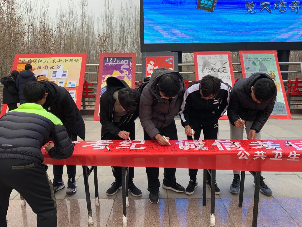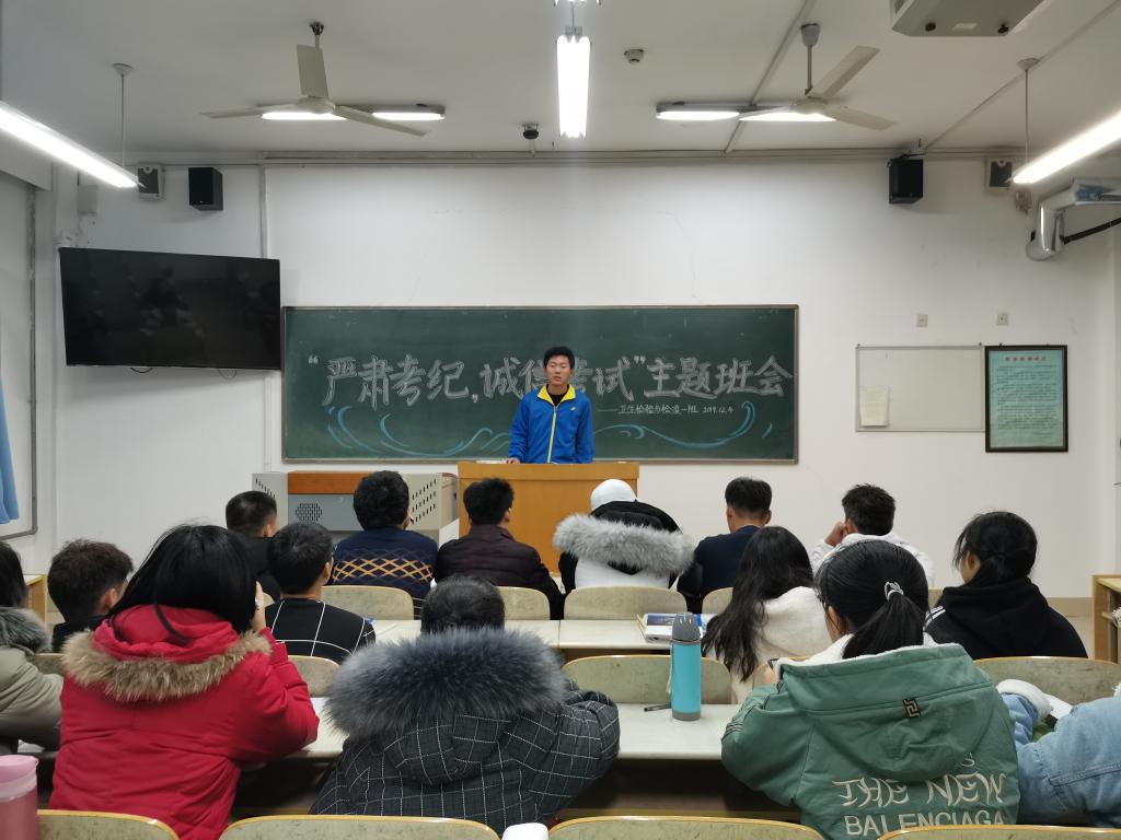 公共卫生公司于2019年12月4日至2019年12月7日举办“严肃考纪 诚信考试”主题系列活动。本次活动分为主题班会、诚信宣誓及签名三部分。