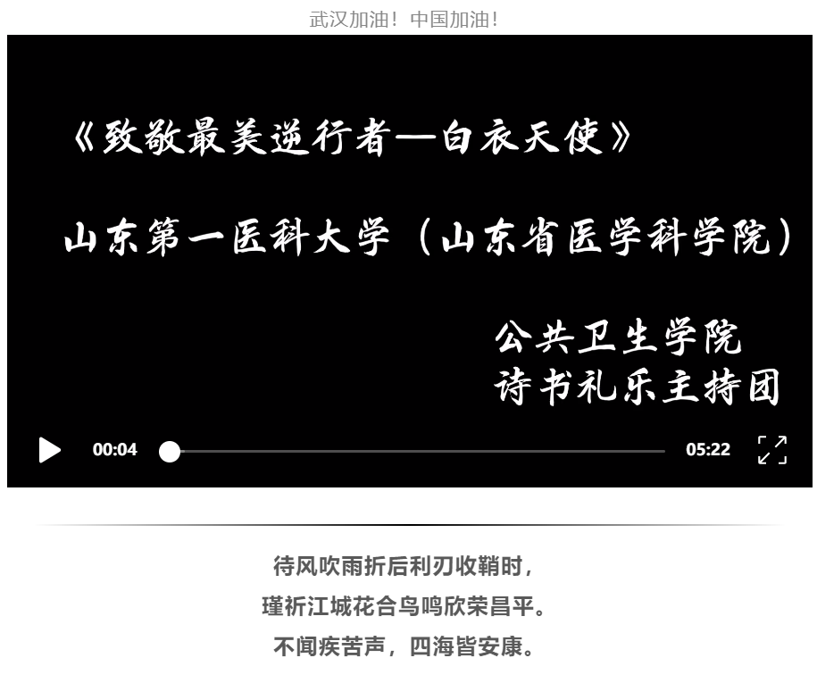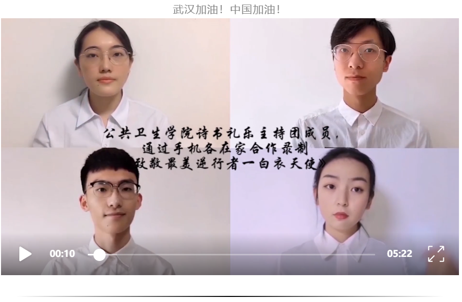 2020年春节,一场没有硝烟的“战疫”在进行,社会各界都在尽自己所能,为打赢这场战争贡献力量。自新冠肺炎疫情发生以来,一大批公卫员工、学子驰援武汉以及在疫情防控一线各尽所能,与千万医护工作者一道,用信念和行动展现“敬畏生命、救死扶伤、甘于奉献、大爱无疆”的医者精神。他们是冲锋在前线的英勇无畏的战士,他们是这场没有硝烟的战争的生命守护者。