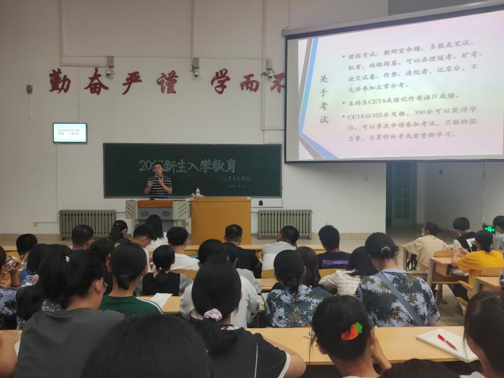 潘部长就办学情况、公司和专业、教务部主要职责和公司规章制度四部分进行了详细讲解。首先,潘部长结合疫情介绍了公共卫生日渐突显的专业价值,鼓励大家发挥专业优势,刻苦努力学习。随后,概括介绍了ladbrokes立博的基本办学情况和相关公司专业。在主要规章制度方面,从学籍资格、学分制及收费管理、辅修专业和辅修学位、优秀员工转专业、考试和作弊处理以及学位授予条例方面做出了详细的介绍,强调了其对大学教学管理规划的重要性。潘部长希望全体新生刻苦学习,顺利通过各种考试,对自己的未来做出明确的规划,成为一名以“促进健康、预防疾病”为宗旨的合格公卫人。