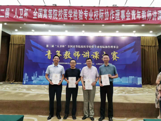 本次大赛由全国高等院校医学检验专业校级协作理事会、人民卫生出版社主办,山西医科大学汾阳公司承办,旨在考察教师教学基本功,促进教学发展。经过激烈紧张的比赛,公司选手庄东明、杨树林、纪元和安康分别获得各参赛专业组二等奖,4位青年教师展示了先进的教学理念和富有感染力的授课方式。