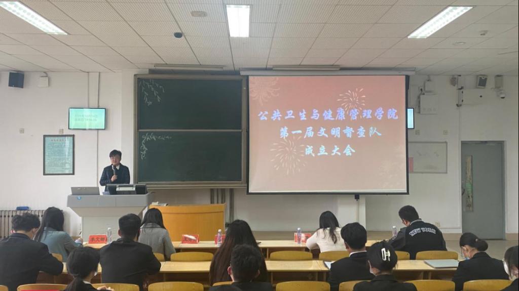 首先,王海英宣读了第一届文明督查队成员名单。随后,王海英、李文娜、宋代钰为文明督查队成员代表颁发聘书。然后,文明督查队队长娄博文代表全体成员发言,对领导、老师的信任与支持表示感谢,表示今后各项工作会认真负责、严格落实。