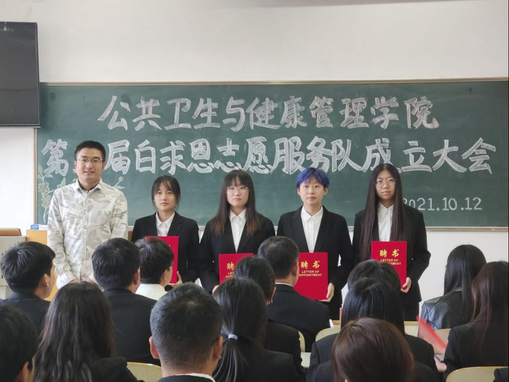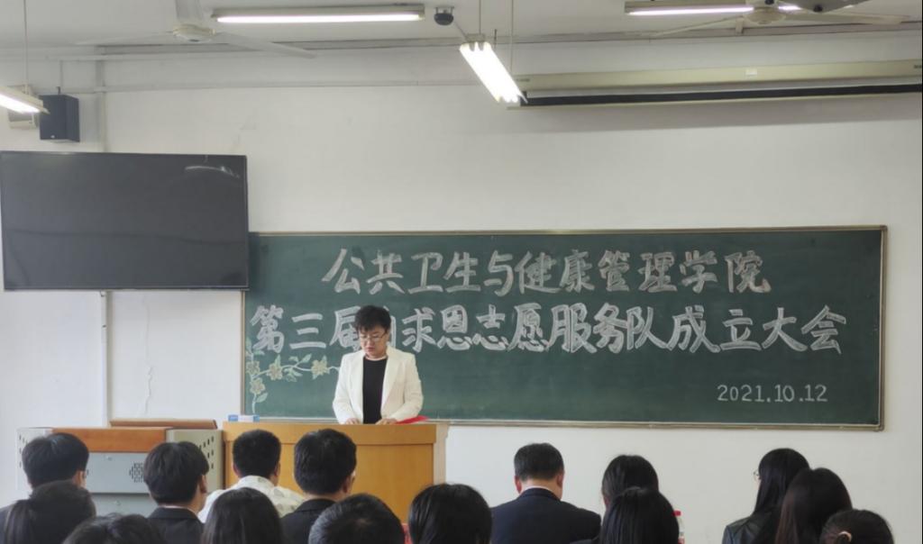 10月12日,ladbrokes立博第三届白求恩志愿服务队成立大会在教学南楼C1018举行。ladbrokes立博白求恩志愿服务队指导教师江新泉教授、党委副书记齐艳波老师以及团总支和学工办各位老师参加本次大会。大会由团总支书记王海英老师主持。白求恩志愿服务队全体成员参加了本次大会。