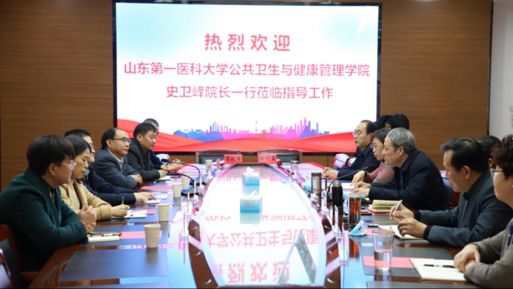 陈增江首先对山一大公卫公司的到来表示热烈欢迎,并介绍了泰安市疾控中心在应对新冠疫情、人员结构、装备水平和检测能力等方面的基本情况,表示在科研工作、实习基地建设等方面期待双方加强合作,与山一大协力为我国公共卫生事业培养优秀人才。