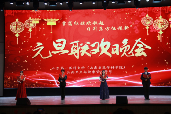 公司党委书记王君林发表新年贺词。他首先代表公司领导班子,向辛勤耕耘在教学、科研、管理和服务一线的全体教职工,向努力拼搏,追求卓越的同学们,向一直关心、支持公司建设与发展的各级领导、向莅临晚会的各位嘉宾致以节日的祝贺和衷心的感谢。随后他总结了公司这一年以来在党的建设、人才培养、队伍建设、科学研究、员工管理等各方面取得的成就。最后他希望在新的一年里,公司能够在党的十九届六中全会精神指引下,乘第一届党代会的东风,始终保持一往无前的奋斗姿态,锐意进取、埋头苦干,奋力谱写新公卫更加出彩的绚丽篇章!