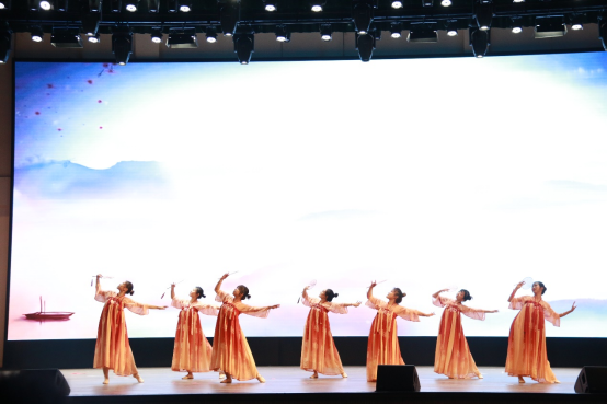 晚会由一曲唯美大气的开场舞《万疆》拉开了帷幕。接下来的节目形式多样,精彩纷呈。独唱《孤勇者》展现了医务工作者在疫情中以血肉之躯护佑生命的责任与担当;朗诵《风华》讲述了中国共产党带领人们从争取民族解放到如今全面建成小康的奋斗历程;情景剧《播火者》讲述了将革命的火种洒遍中国的李大钊的故事,让观众们铭记,今天的盛世太平,是无数先烈舍生忘我换来的。台上演员的倾情演绎,让台下的观众潸然泪下。《我和我的祖国》用优美的歌声、飘逸的舞蹈,表达了我们对祖国无尽的爱。动感的现代舞《华夏》展现了同学们激昂的青春;民族舞《西楼别序》展现了东方女性的含蓄之美;小品《时间都去哪了》生动描绘了手机依赖者的日常,笑过以后,发人深省。歌曲《岁月神偷》引发了人们对青涩而美好的爱情的回忆。由山东职业卫生与职业病防治研究院带来的《荧光舞》炫酷有趣,赢得观众的阵阵掌声;由泰安市疾病预防控制中心带来的舞蹈《我们的旗帜》表达了疾控卫士在党旗指引下戍卫民众健康的决心;由公司年轻教师表演的吉他伴唱《Five Hundred Miles》清新唯美、旗袍走秀《东方古韵》将晚会气氛推向高潮;最后,晚会在歌曲《新征程》激昂的旋律中圆满落幕。