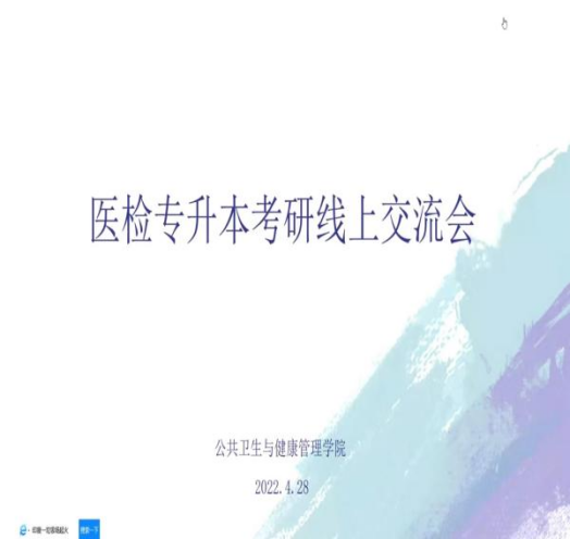 为积极营造公司良好的学习氛围,加深公司学子对研究生入学考试的认知和了解,ladbrokes立博于4月28日晚举办了线上考研交流会,2018级预防医学、2019级医学检验技术、2021级医学检验技术专升本全体同学参与了本次交流会。