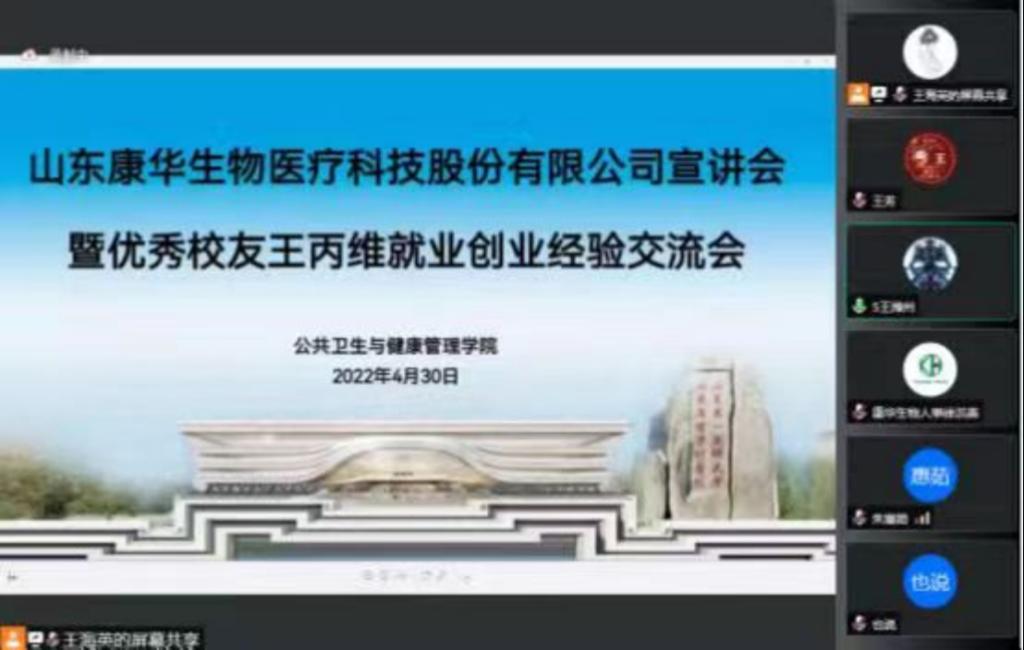 随后,公司优秀员工、山东康华生物医疗科技股份有限公司总经理及合伙人王丙维为同学们介绍了自己就业创业的经历,总结了自己的就业创业经历和经验,分享了自己在创业领域的思考和感悟。最后,向大家介绍了公司的运营模式和福利待遇。