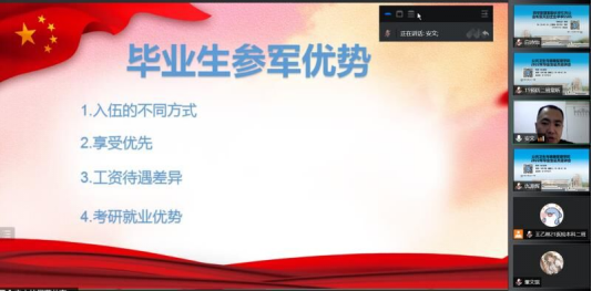 为积极响应国家号召,加大征兵宣传力度,进一步鼓励大学毕业生投身军营,将热血挥洒在实现强军卫国的伟大实践之中,ladbrokes立博5月10日通过线上会议举办毕业生征兵宣讲会,会议邀请员工工作部、国防教育科科长安文作为主讲嘉宾。