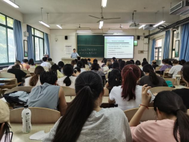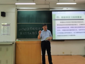 江新泉教授结合丰富的工作阅历,首先从实习目的和意义开始讲述,他强调理论与实践相结合的重要性;阐述了实习角色转变的必要性,教导同学们如何学会临床思维,提高自身综合能力。最后,江教授讲解了实习中可能面临的问题和困难,提醒大家认真查看实习手册相关知识,并就该如何圆满完成临床实习、如何做好职业生涯规划提出指导性建议。