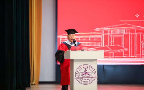 李栋回顾了同学们在校期间国家追光逐梦的发展历程。党的十九大擘画了新时代中国特色社会主义宏伟蓝图;改革开放四十年豪迈探索的激荡画卷;中华人民共和国成立70周年阅兵式上的铁甲洪流、银鹰呼啸;抗击新冠肺炎疫情斗争取得重大成果;中国共产党百年华诞,全面建成小康社会取得伟大历史性成就;脱贫攻坚战取得了全面胜利,开启了全面建设社会主义现代化国家新征程。同学们见证了母校日新月异蓬勃发展变化。校(院)各项工作全面起势,大学排名大幅跃升,迅速成为山东省重点建设大学和高水平大学建设项目“冲一流”高校;校(院)首次党代会明确提出“三步走”战略和“135工程”,擘画了未来五年及更长时期的发展蓝图。母校也见证了同学们成长成才的巨大变化。同学们在这所科学的殿堂里发奋学习、积极进取,留下了辛勤的汗水、奋斗的足迹和激扬的青春,取得了优异的成绩。