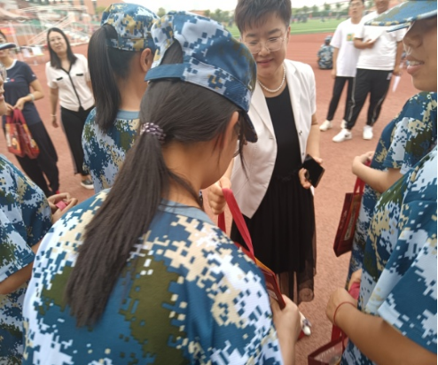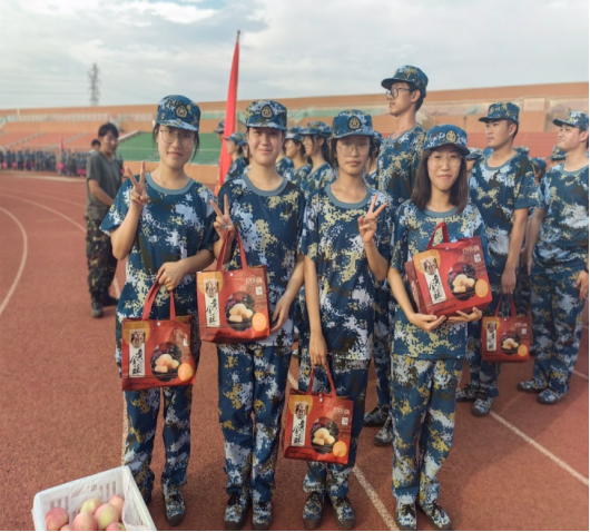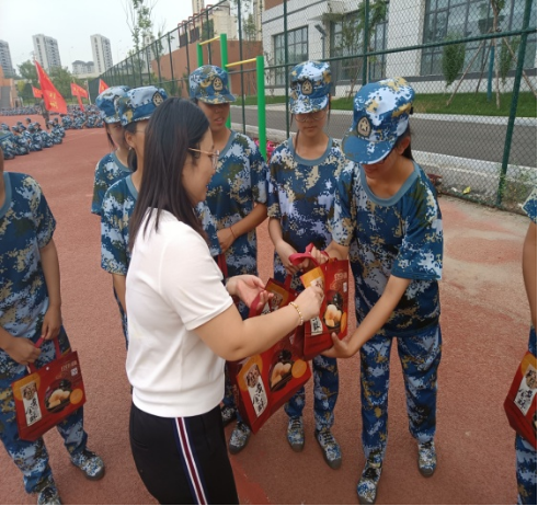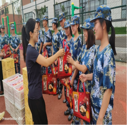 同学们军训休息后,看到老师们亲自准备的礼盒,感到非常惊喜与感动。老师们一边发放中秋礼盒,一边亲切地询问同学们的军训情况,并预祝大家度过一个愉快的中秋佳节。最后员工代表和老师们合影留念。
