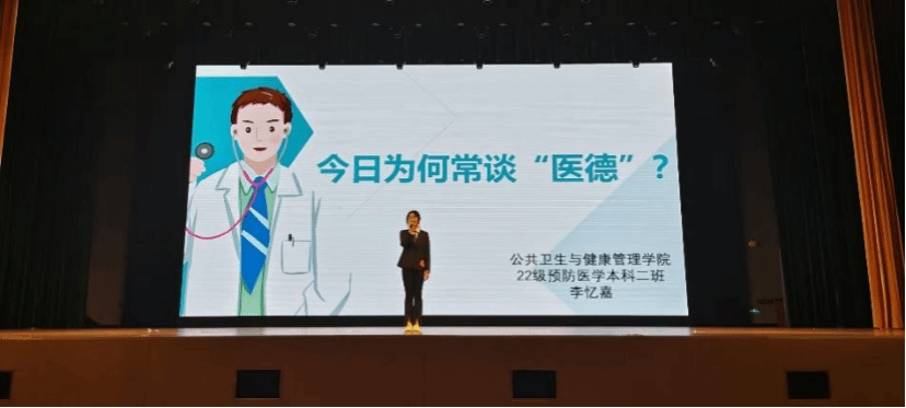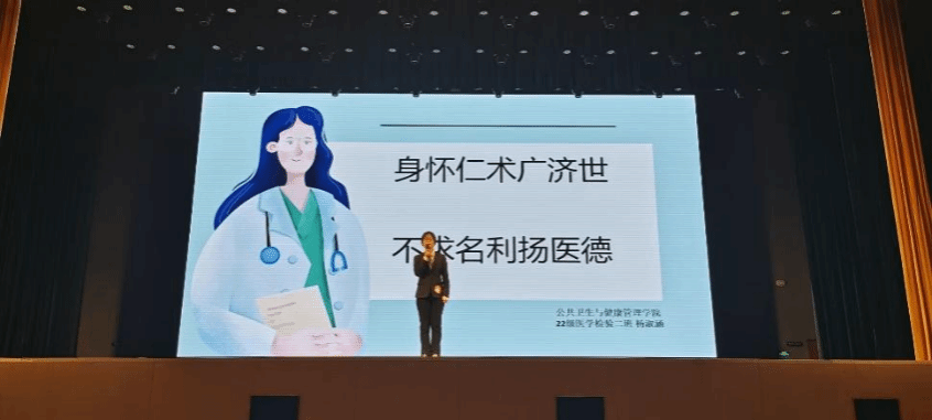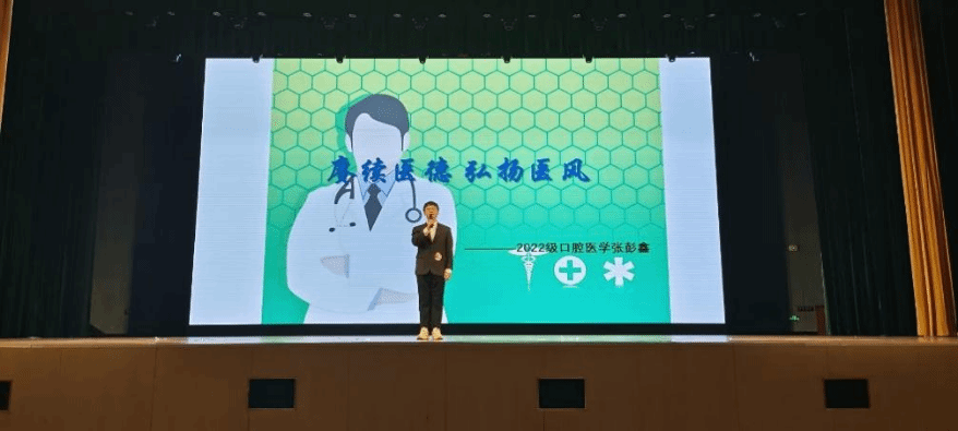 8位参赛选手个个精神饱满、谈吐优雅,紧紧围绕“修医德、铸医魂”的主题,对何为医德,如何践行医德提出了独特见解,并结合张仲景、钟南山、白晓卉等人的典型事迹,表达了对为医学事业献身的坚定信念。一个个动听的故事,一句句感人肺腑的语言,选手们声情并茂、富有感染力的精彩演讲赢得了在场评委和观众的连连掌声。