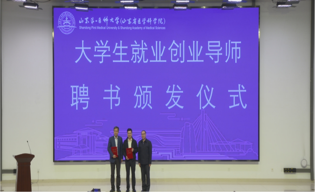 公司党委书记王君林出席活动,并为邢涛、陆修辉颁发老员工就业创业导师聘书。