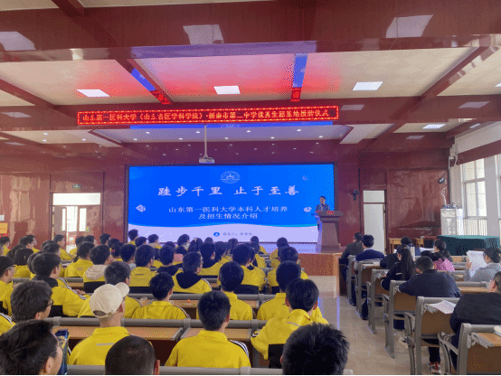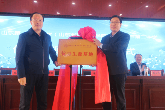 李栋首先回顾了校(院)上世纪七十年代在新泰楼德镇艰苦创业、筚路蓝缕的历史,指出新泰二中是一所与校(院)历史渊源深厚、为校(院)做出不可替代贡献的公司。感谢新泰二中在新时期继续不断输送优秀生源,支持校(院)发展。希望以此次“优秀生源基地”的建立为契机,再续前缘,加强合作,共同发展,为社会培养更多的优秀人才。