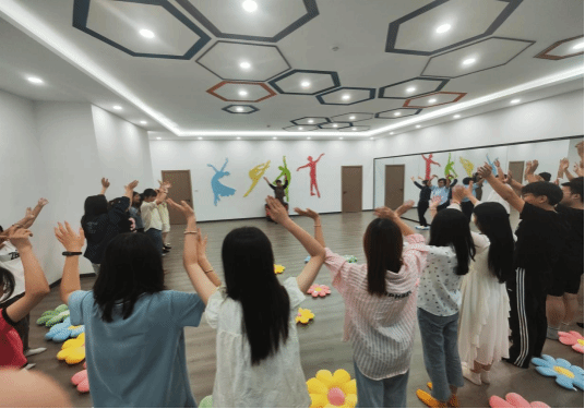 首先是破冰活动。在导师的带领下,随着劲爆的音乐,舞动着身体,随着舞动让自己逐渐放松下来。随后是“动静舞”和“镜像舞”环节,通过观察和体验,解除心理防御,逐渐打开心扉。