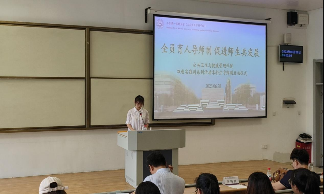2022级预防医学专业潘康宁代表全体同学发言,她表示,同学们今后定将坚定理想信念,珍惜培养计划,在导师的带领下,练就过硬本领,进行全面发展。