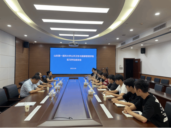 座谈会上,大家一同观看了校(院)宣传片《成势·蝶变》。王君林代表公司感谢泰安市疾病预防控制中心多年来对公司工作的大力支持。他介绍了公司在人才培养、专业团队建设、公司产品、团队队伍建设、研究生教育和实践教学基地建设等方面情况。他希望在此基础上加强沟通交流,继续深化合作,尽快在实践育人、学术交流、科研立项、人才互动等方面有新的突破。李晓梅介绍了公司迎接教育部本科公司产品审核评估的相关事宜,希望以此次审核评估为契机,强化“以评促建、以评促改、以评促管、以评促强”,进一步加强实习基地规范化建设,提高实践教学质量。徐希柱介绍了校(院)公司产品审核评估工作对实习基地具体工作要求和有关注意事项。