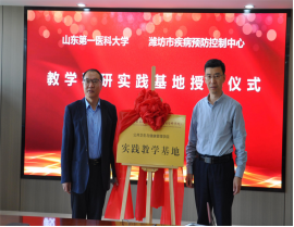 10月25日,公司党委书记王君林一行3人赴潍坊市疾病预防控制中心举行实践教学基地签约挂牌仪式。潍坊市疾病预防控制中心党委副书记、主任单杰,党委委员、副主任王笑男出席会议。