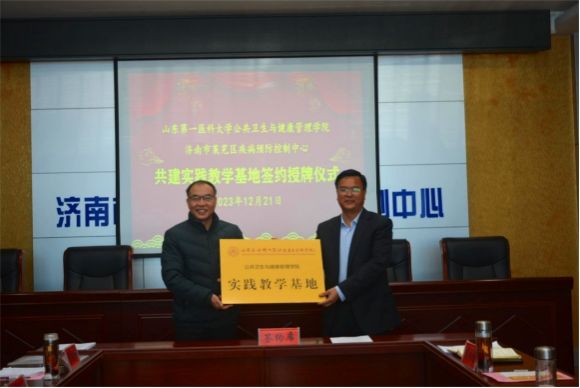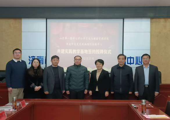 12月21日,公司党委书记王君林、副经理徐希柱等一行4人赴莱芜区疾病预防控制中心举行实践教学基地签约揭牌仪式。莱芜区委常委、区政府副区长王静媛,莱芜区卫生健康局党组书记、局长崔言炬,莱芜区疾病预防控制中心党总支书记、主任高永生出席会议,会议由崔言炬主持。