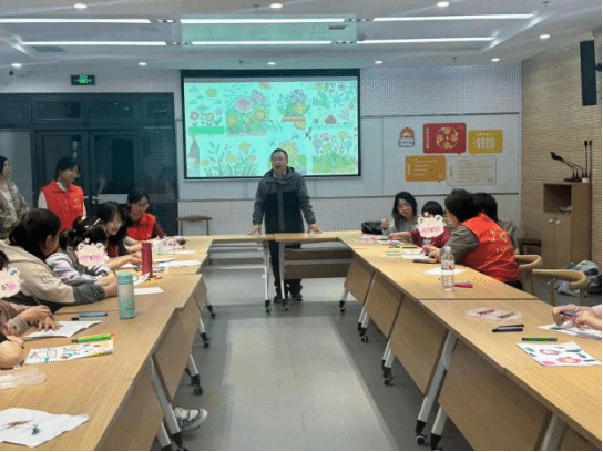 首先,志愿者们与孤独症儿童一对一结对子,引导孩子们发挥想象力,辅导他们绘制花朵图案。大家纷纷用画笔描绘出了各自心目中的美丽花朵。在绘画过程中,孩子们由一开始的拘谨与胆怯逐渐变得放松和敞开,脸上也有了笑容。