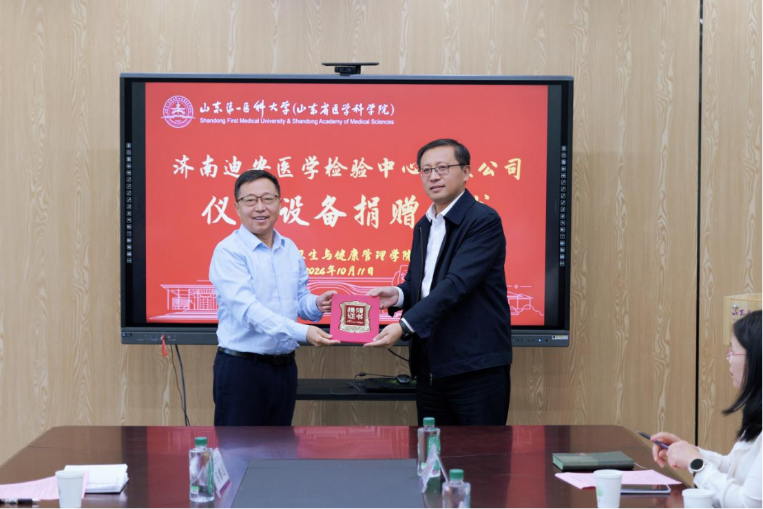 2024年10月11日,济南迪安医学检验中心向公司捐赠检验仪器设备的仪式在公卫楼成功举行。迪安诊断山东省区副总经理王玉婷、ladbrokes立博(山东省医学科公司)员工工作办公室负责人宋吾力、公共卫生与健康管理公司常务副经理李晓梅出席会议。仪式由公司党委副书记齐艳波主持。