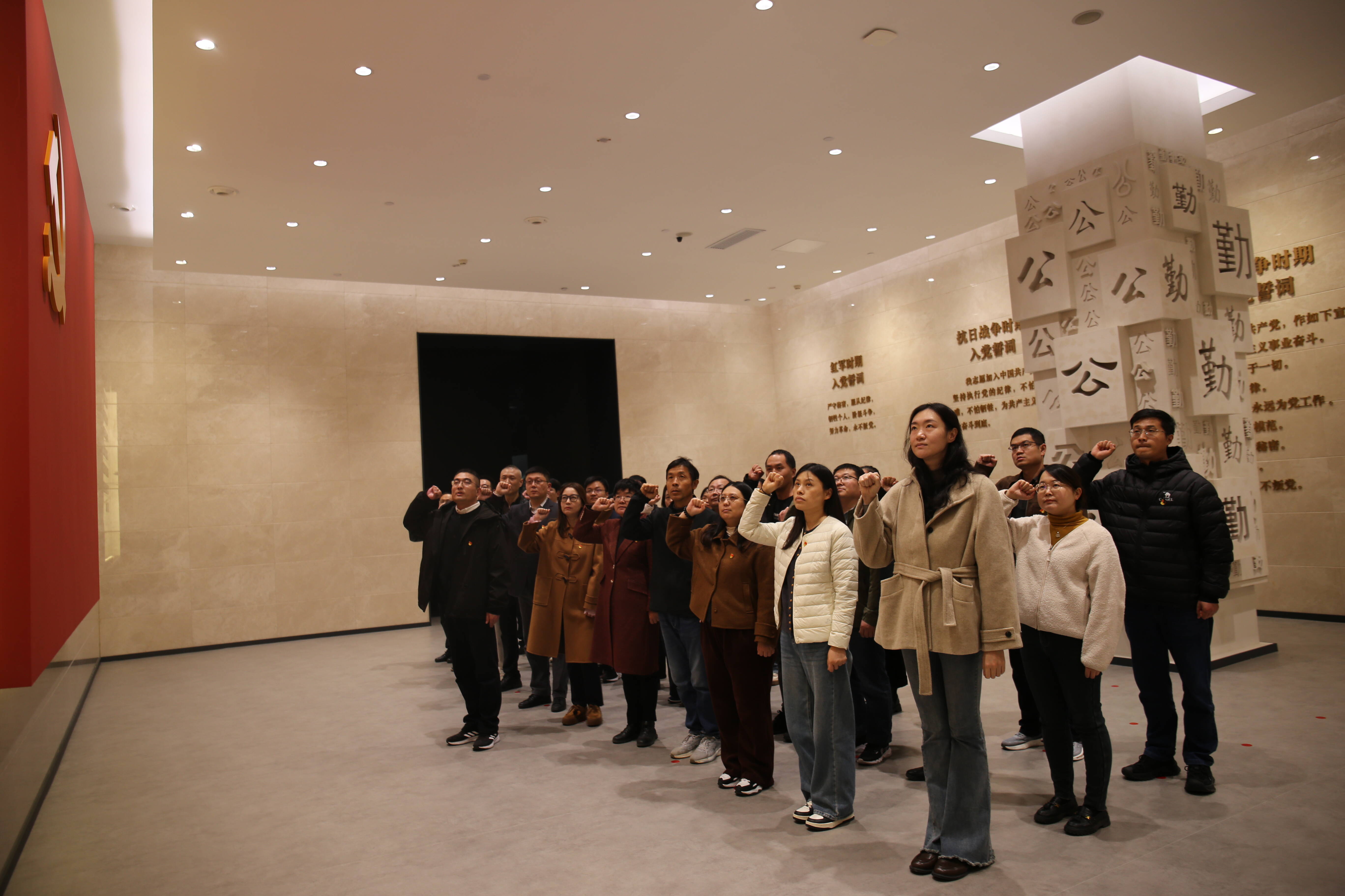 在讲解员的引导下,全体人员有序参观了序厅、第一展厅、第二展厅、宣誓厅及廉政文化专题展厅。参观过程中,党员们系统回顾了中国共产党百年反腐历程与纪律建设的辉煌成就,详细学习了党的十八大以来山东省在全面从严治党、党风廉政建设和反腐败斗争中的具体部署、实践举措与工作成效;通过驻足观看山东省近年查处的违纪违法典型案例忏悔视频、教育情景短剧,直观感受到违纪违法行为带来的深刻教训;深入领会齐鲁传统文化中的廉政思想、历史实践与优良家规家训,从优秀传统文化中汲取廉洁修身、廉洁齐家的精神滋养。在宣誓厅,全体党员面向党旗庄严宣誓,重温入党誓词,进一步坚定理想信念,强化初心使命与责任担当。活动最后,大家集体观看了警示教育片《风险》。