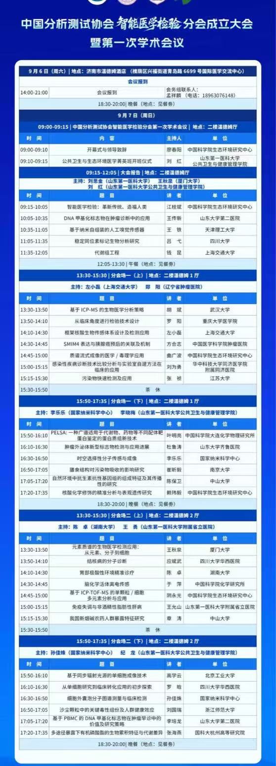 会议将邀请分析测试、医学检验及相关领域的专家学者参会并作大会报告,交流智能医学检验的新理念,分享智能医学检验领域特色人才队伍的建设经验,探索智能医学检验的标准化进程,并展示智能医学检验技术研究和应用的新成就、新成果。